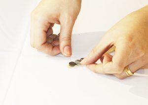 2) Com a fita adesiva, cole alguns ímãs embaixo do carrinho. Não use muita fita para que o ímã não perca o “efeito”. A quantidade de ímãs necessária vai depender do peso e do tamanho do carrinho.