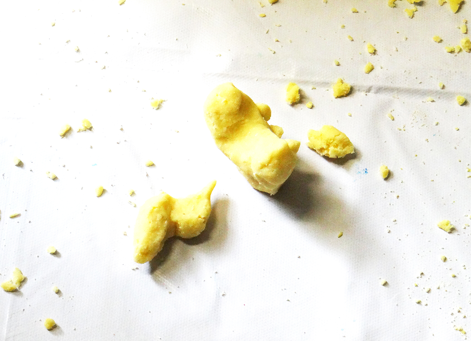A consistência dessa meleca é bem diferente da meleca com amido de milho que testamos aqui. Ela fica muito mais rígida, sendo possível até modelá-la um pouquinho.