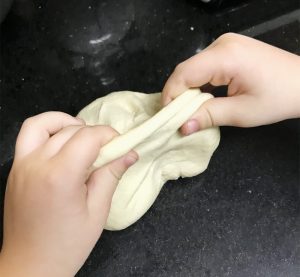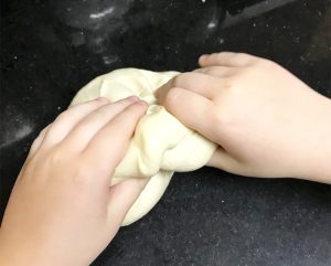 Depois de atingir o ponto de desgrudar das mãos, sove a massa por 3 minutos (amasse sem rasgar).