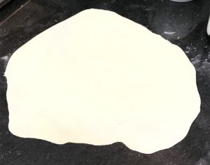 Em seguida, corte a massa em 4 partes iguais e abra com o rolo no tamanho de sua frigideira, deixando a massa bem fininha. Quanto mais fininha, mais crocante ficará sua pizza.