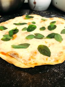 Retire do fogo novamente, coloque manjericão a gosto e pronto… a pizza já está pronta para acompanhar a torcida. Essa receita rende 4 discos do tamanho de uma frigideira.